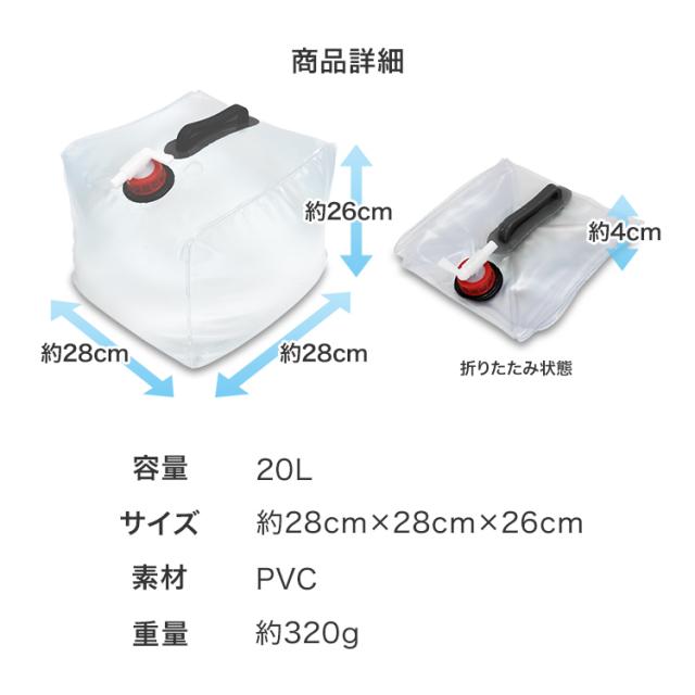 ウォータータンク 防災グッズ 水保存 折りたたみ 20リットル 20L【5個セット】タンク ポリタンク 給水タンク 給水袋 貯水タンク コンパクト コック付き テント 重り ウォーターウェイト ウェイト テントウエイト 給水用品 断水 送料無料