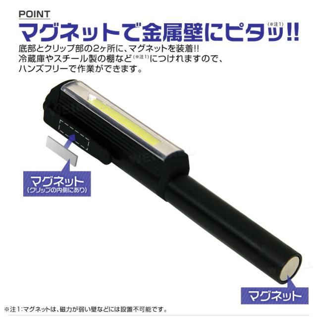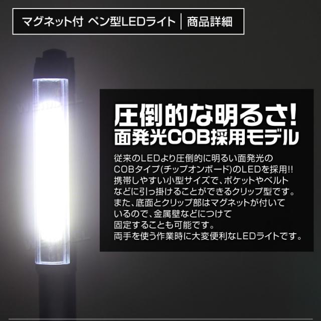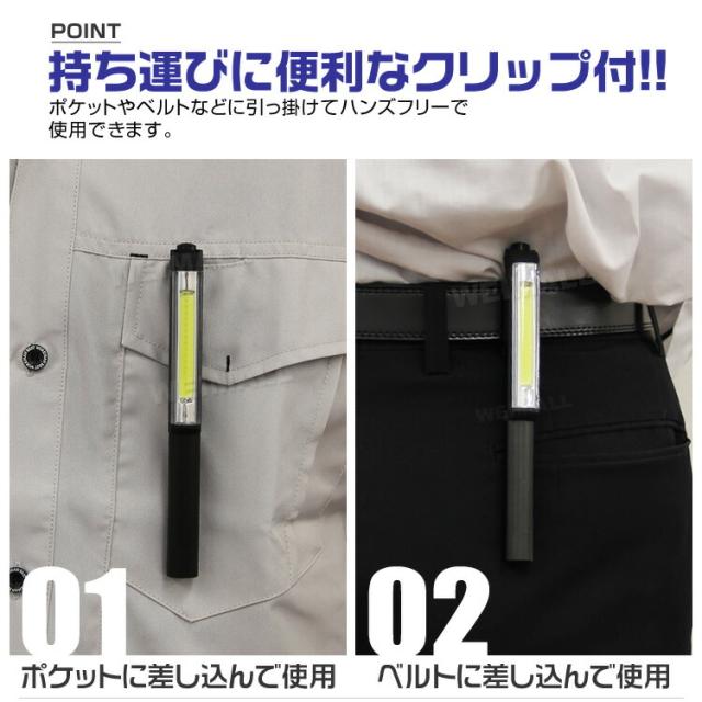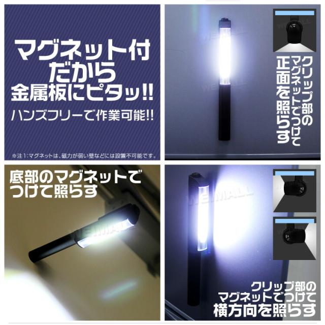 LED懐中電灯 ハンディライト LED 作業灯 ペンライト ワークライト COB ライト 電池式 LEDペンライト 懐中電灯 マグネット ハンドライト クリップ スティックライト ゆうパケット 送料無料
