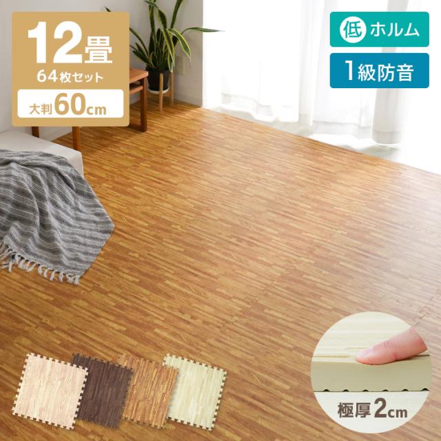 ジョイントマット ノンホルム 12畳 64枚 木目調 大判 極厚 厚手 2cm 20mm 60cm サイドパーツ付 床暖房対応 単色 木目 ジョイント マット PE 赤ちゃん フロアマット プレイマット 防音 送料無料 洗える カーペット ベビー ペット ペット用