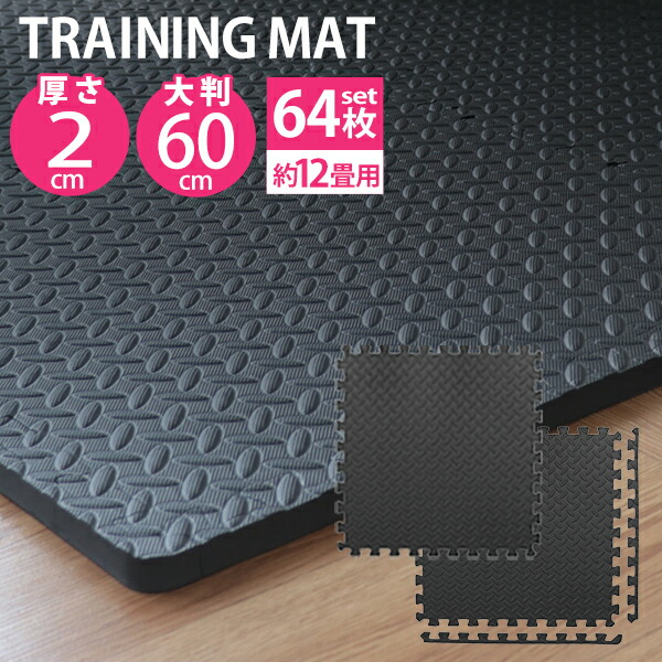 ジョイント トレーニングマット 大判 60cm 厚さ2cm 64枚セット ジョイントマット トレーニング エクササイズ ヨガ マット ジムマット 防音マット フロアマット トレーニング用ジョイントマット 筋トレ 送料無料
