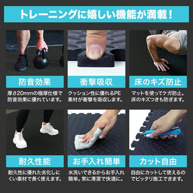 ジョイント トレーニングマット 大判 60cm 厚さ2cm 32枚セット ジョイントマット トレーニング エクササイズ ヨガ マット ジムマット 防音マット フロアマット トレーニング用ジョイントマット 筋トレ 送料無料