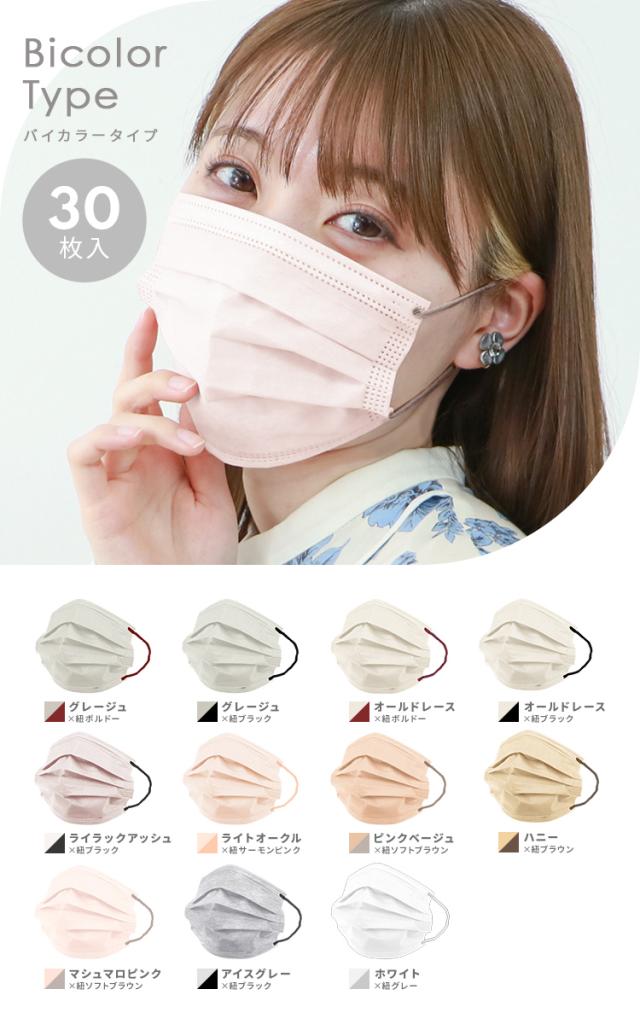 不織布マスク 50枚 バイカラー 30枚 プリーツマスク マスク 不織布 血色カラー 花粉 両面同色 カラー 14.5cm 16.5cm 17.5cm 立体 マスク やわらかマスク 血色マスク 不織布 カラーマスク カラー 小さめ マスク 花粉 送料無料