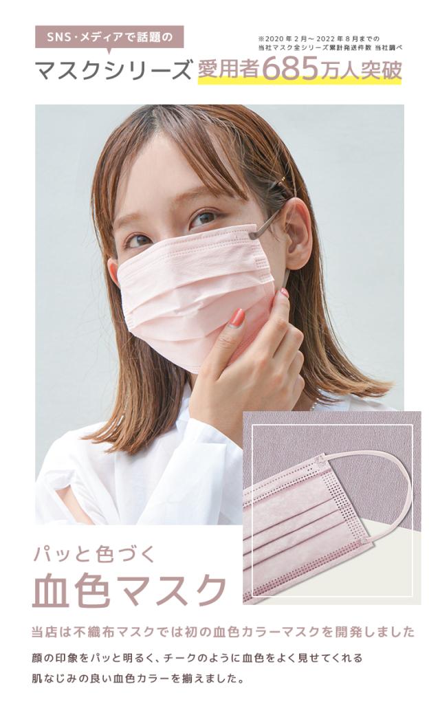 - 仕事には、欠かせないマスクです。 肌あたりや、耳も問題なく無くなりそうになると必ず購入してます。 色は、その時の気分でたまに変えていますが、コスパがいいのが持続購入になってますね。