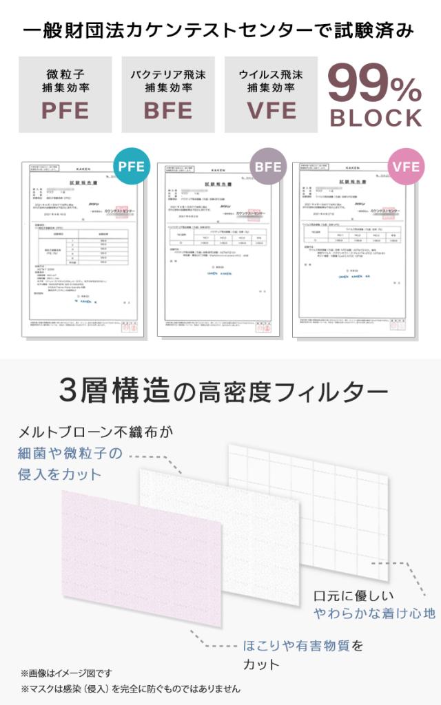 | 特徴 | 【特注仕様】両面同色・耳紐同色 10枚ずつ個包装 3層構造 99%カット高密度フィルター 平ゴム採用 耳が痛くなりにくい 風邪予防 飛沫対策 花粉対策 PM2.5対策 ハウスダスト対策 |