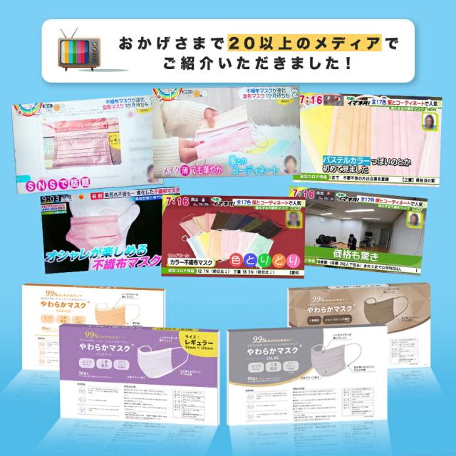 【ZIP!・Cancamで話題】 不織布マスク 50枚 やわらかマスク マスク 不織布 血色カラー 両面同色 個包装 花粉 17.5cm 16.5cm 14.5cm 血色マスク 不織布 カラー 耳が痛くならない 小さめ 使い捨て WEIMALL 送料無料