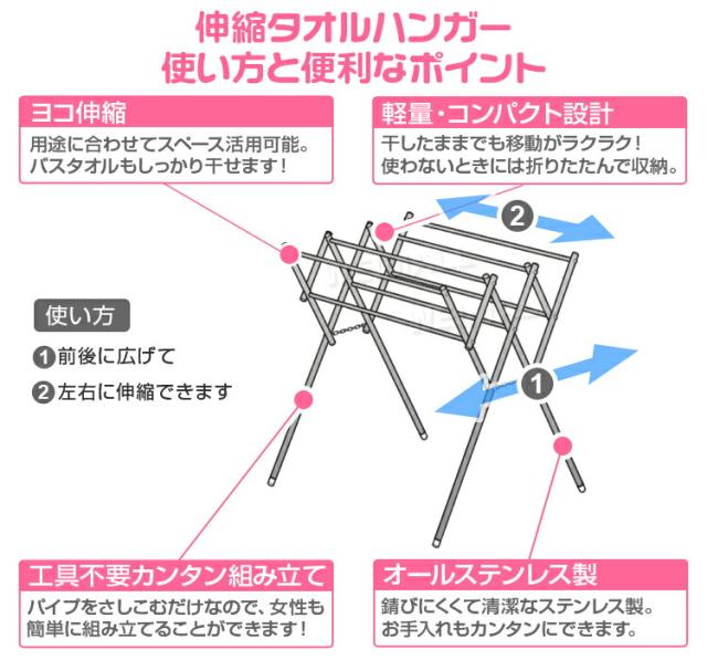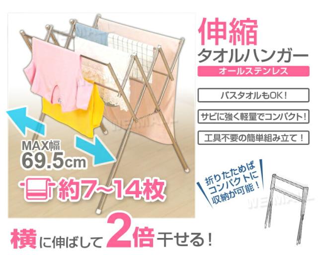 タオルハンガー おしゃれ 伸縮式 室内物干し 折りたたみ コンパクト ステンレス 洗濯物干し 室内 物干しスタンド 物干し竿 洗濯物干し 洗濯干し ランドリー タオル スタンド 伸縮 洗濯用品 一人暮らし 新生活 送料無料