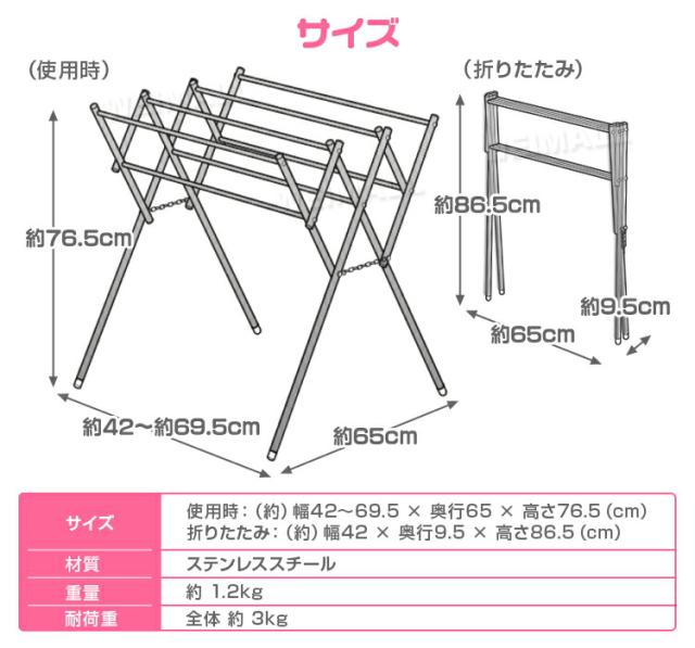 | 注意事項 | ・お客様組立商品です。 ・必ず平坦な場所に設置し、転倒しないようバランスよく干してください。 ・お子様がぶら下がったり登ったりして遊ばないようご注意ください。 ・商品は、モニターによって色合いが異なって見える場合があります。 ・仕様・デザインは改良のため予告なく変更することがあります。 |