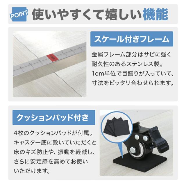 - キャスターが付いてて、掃除が容易に出来て満足です。