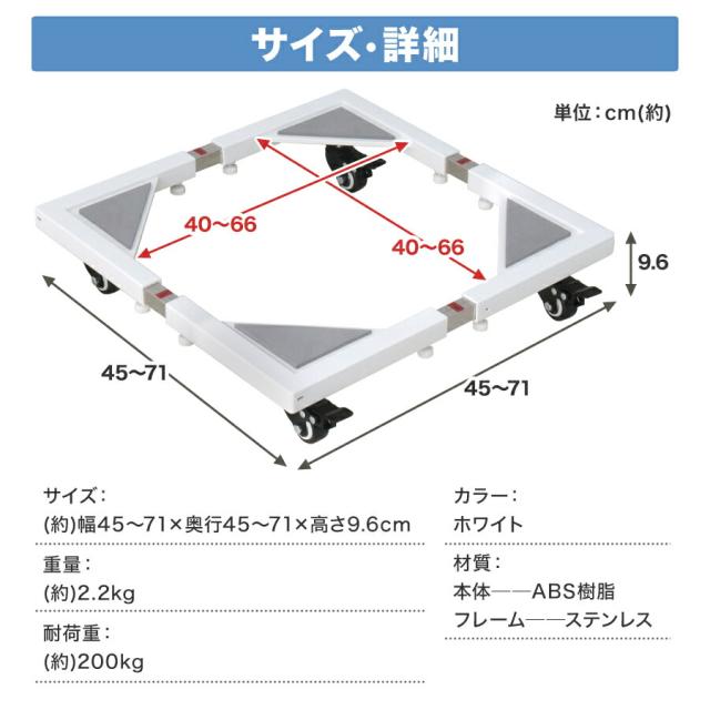 洗濯機置き台 45〜70cm 200kg対応 キャスター ドラム式 洗濯機 置き台 室内 洗濯機パン ドラム式洗濯機 洗濯機置台 洗濯台 洗濯機台 洗濯置き台 洗濯機スライド台 コンテナ台車 台車 360度回転キャスター 冷蔵庫 置き台 一人暮らし 新生活 送料無料