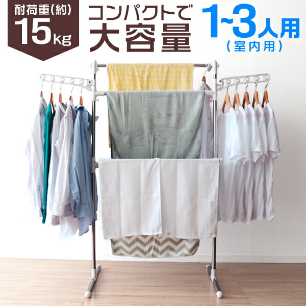| 注意事項 | ・お客様組立商品です。 ・必ず平坦な場所に設置し、転倒しないようバランスよく干してください。 ・お子様がぶら下がったり登ったりして遊ばないようご注意ください。 ・商品は、モニターによって色合いが異なって見える場合があります。 ・仕様・デザインは改良のため予告なく変更することがあります。 |