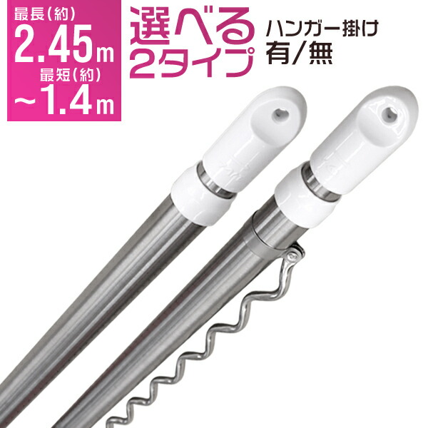 【選べる2本セット】物干し竿 ハンガー掛け付き 伸縮物干し竿 1.4m〜2.4m ステンレス 伸縮 物干し 竿 物干し台用 洗濯物干し 洗濯干し 布団干し 洗濯用品 一人暮らし 新生活 送料無料