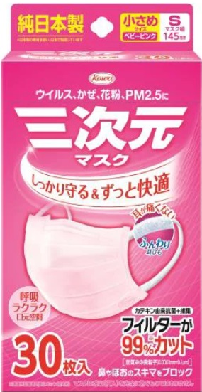 マスク 純日本製 興和新薬 三次元マスク 小さめ S 30枚入 ピンク