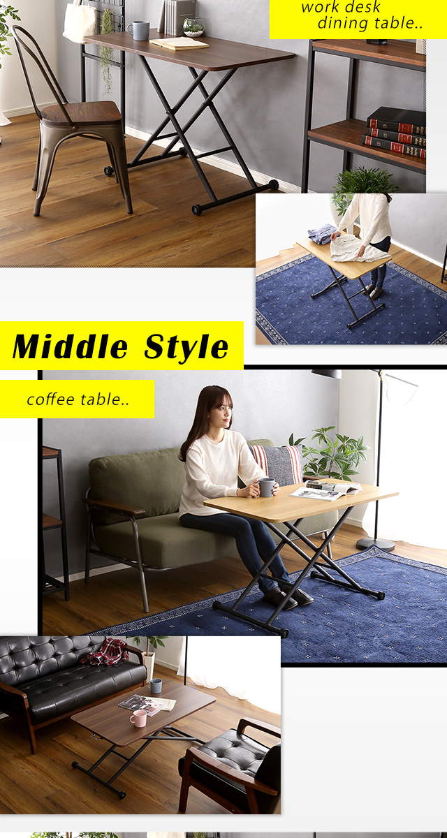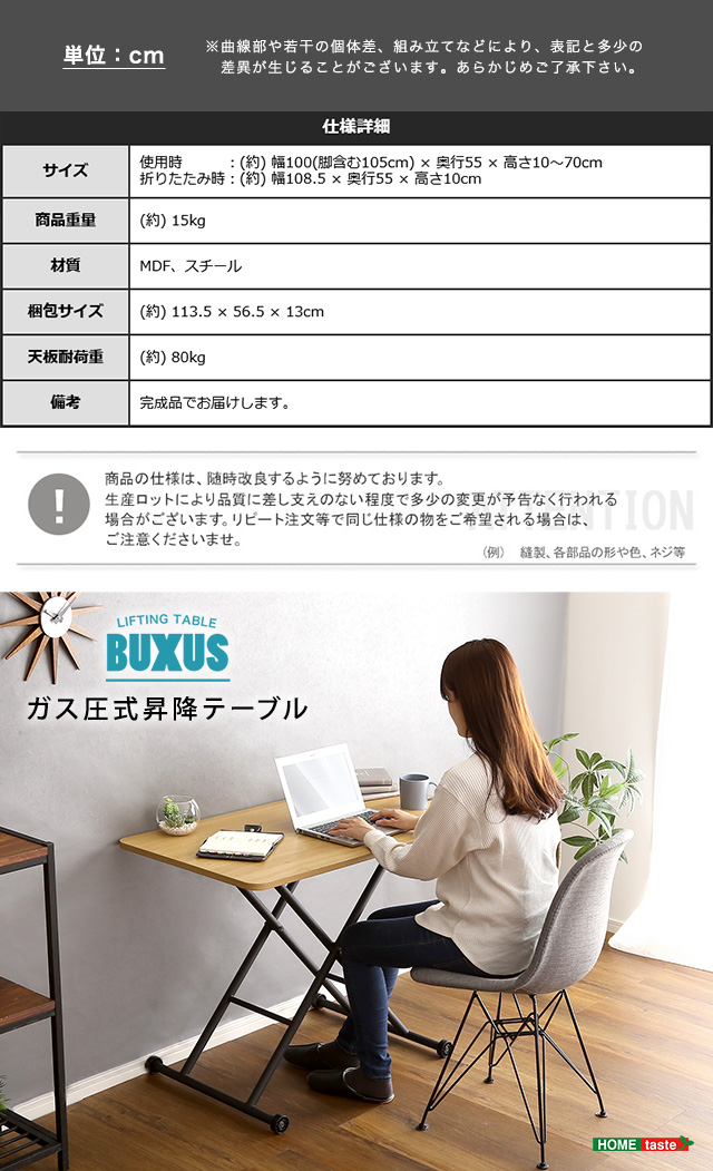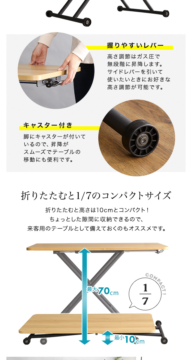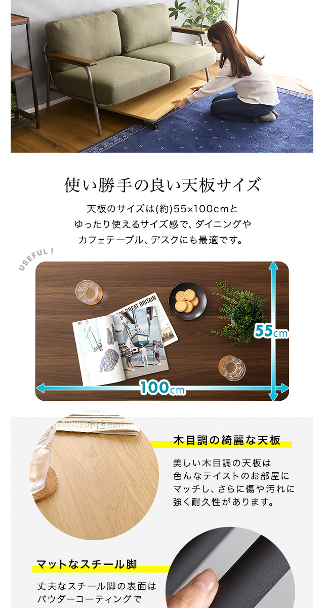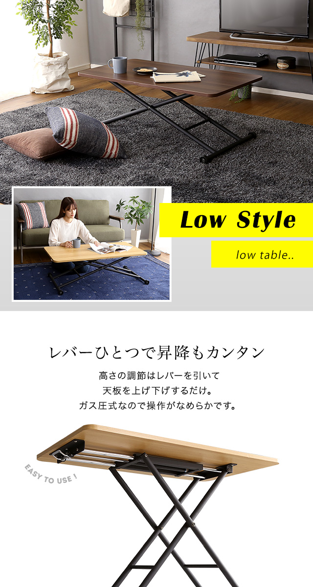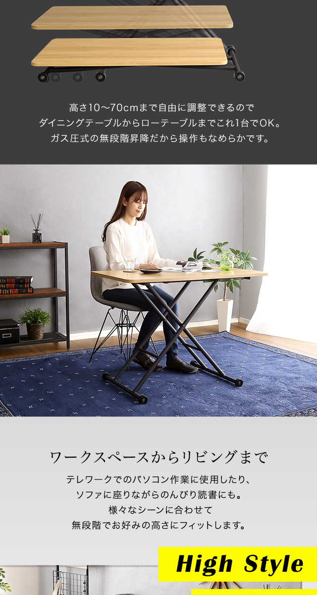 レバーひとつで無段階昇降 ガス圧 昇降テーブル 100×55 送料無料 昇降式 ダイニングテーブル リビング 高さ調節 小さめ 一人暮らし おしゃれ デスク 手動 コンパクト ハイタイプ ロータイプ 作業台 インテリア ローテーブル