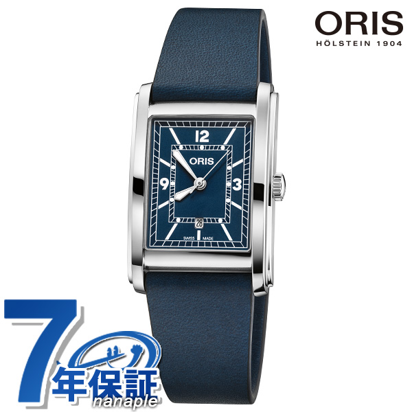 正規品 7年保証キャンペーン オリス レクタンギュラー デイト 25.5mm スイス製 自動巻き ユニセックス メンズ レディース 腕時計 561-7783-4065LBL ORIS RECTANGULAR DATE アナログ ブルー 革ベルト ◆ORIS(オリス)は、ポール・カッティン氏とジョージ・クリスチャン氏の2人によってスイスのヘルシュタインで創設されました。近くを流れる小川にちなんで社名をオリスと命名。手頃な価格ながら、革新的で高機能かつ実用的な機能を備えた本格機械式時計で知られ、世界中の時計ファンから愛されているブランドです。 アールデコ様式にインスパイアされたデザインの文字盤がポイント。文字盤外周と内側の長方形にはレールラインが描かれ、ケースのシルエットを際立たせています。また、ケースサイドの段差が存在感を高め、ラグ先端が細くなっていることで、手首に安定して自然に収まるようになっています。男女問わずお使いいただけ、ペアウォッチとしてもおすすめです。 発売日:21年12月発売 機械式腕時計