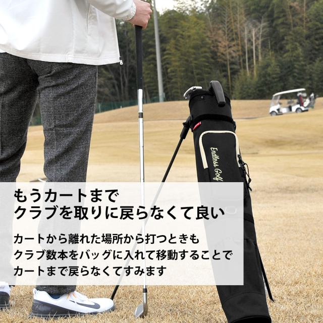 カートから離れた場所から打つときもクラブ数本をバッグに入れて移動することで、