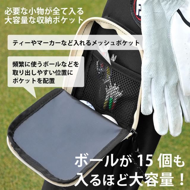 上ポケットは頻繁に取り出すティーやボールなどを取り出しやすい位置に