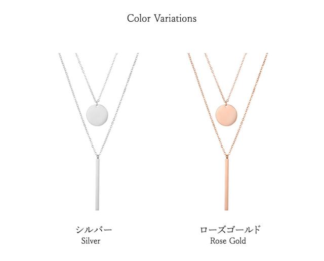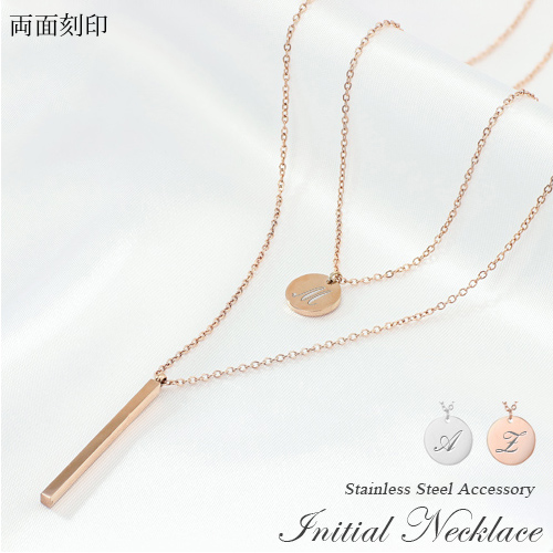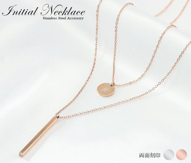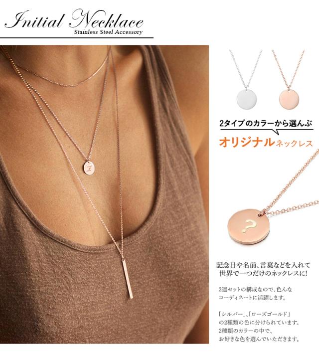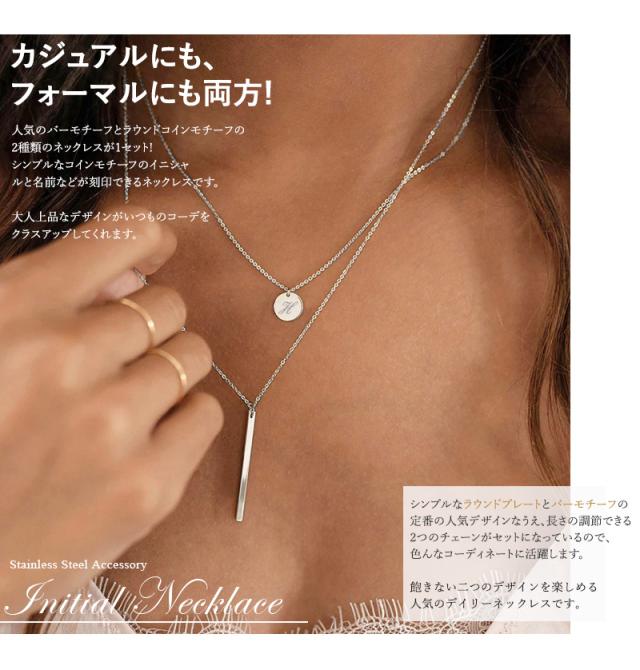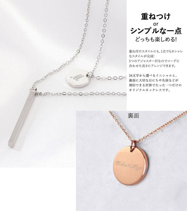 イニシャルコインネックレス【名入れ無料】 バー 2連ネックレス セット 名入れ ステンレス 2色 シルバー ローズゴールド 大人 かわいい おしゃれ 刻印 シンプル 女性 aruon 名入れ工房