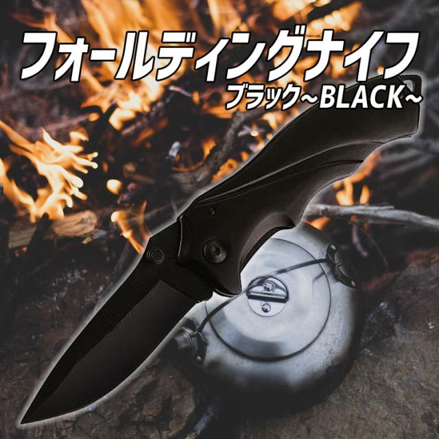 アウトドア用折り畳みナイフ フォールディングナイフ 登山 釣り キャンプ 防災 バーベキュー サバイバル ブラック色 MIKEB43