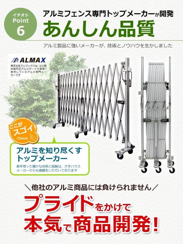 ●アルミ製なので木製に比べて耐久性が高く、定期的な塗装も不要。