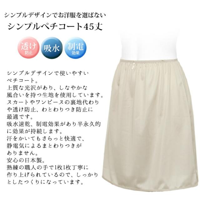 ペチコート スカート 45cm丈 4589 シンプル ランジェリー 静電気防止 下着 レディース ぺチスカート 日本製 渡辺商店 透けない 透け防止 フレア ハーフ ひざ丈 ペチコートスカート 浴衣 白 黒 M L LL 下着透け対策 ナチュラル 大きいサイズ 1000円ポッキリ 送料無 4589