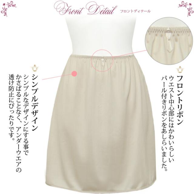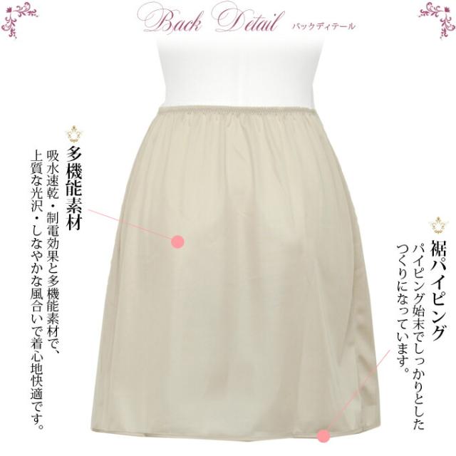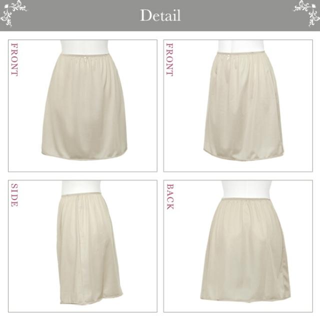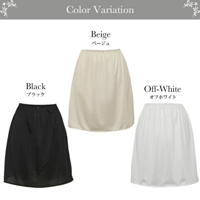 シンプルデザインで使いやすいペチコート。上質な光沢があり、しなやかな風合いを持つ生地を使用しています。スカートやワンピースの裏地代わりや透け防止、わとわりつき防止に最適です。