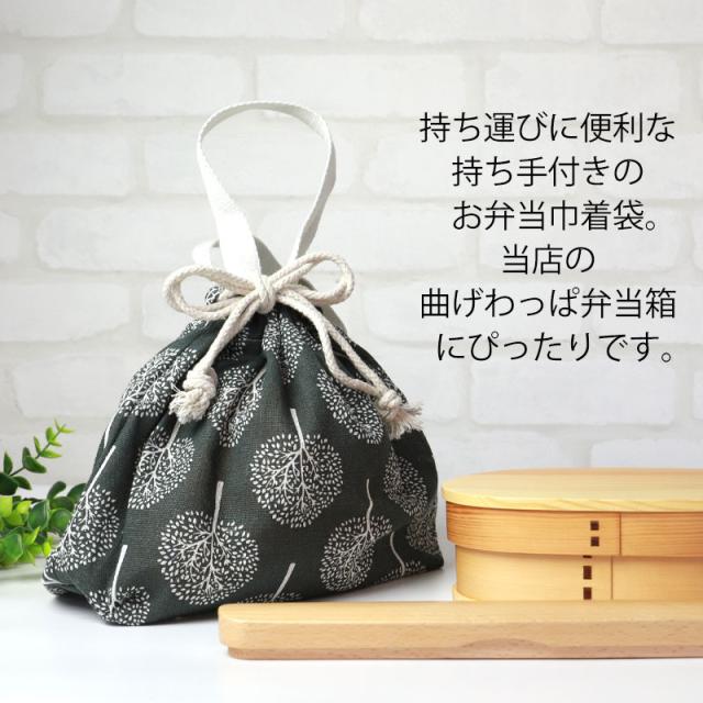 持ち運びに便利な持ち手付きのお弁当巾着袋です。当店の曲げわっぱ弁当箱にぴったりです。