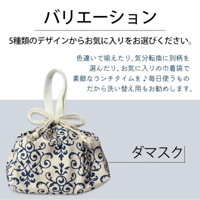 色違いで揃えたり、気分転換に別柄を選んだり、お気に入りの巾着袋で素敵なランチタイムを♪