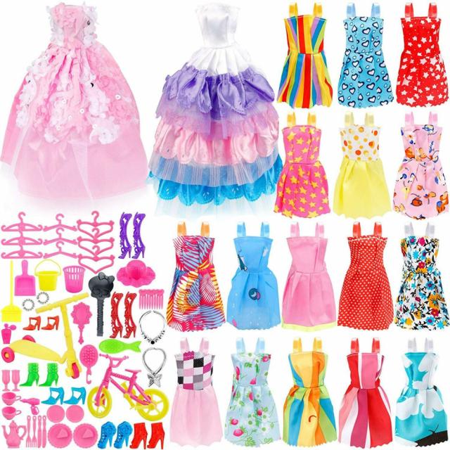 73ピースドール服パーティーガウンシューズバッグネックレスハンガーおもちゃアクセサリーランダムカラー