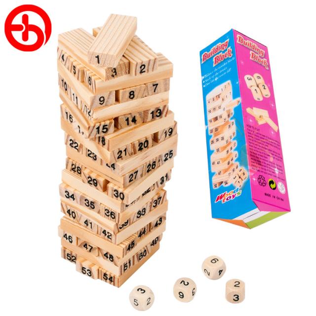 54PCS木製タワー玩具セットビルディングブロック教育キッズギフトウッドブロックスタッキングゲーム