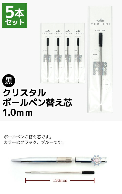 vertini crystal ボールペン 5本セット 専用替芯 1.0mm 黒 ボールペンリフィル ブラック ボールペン替え芯 送料別 入学式 卒業式 卒園式 お呼ばれ 成人式 お祝い