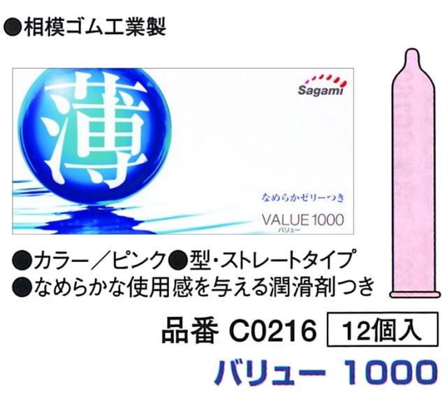 ◆【あす着】【ポスト投函】相模ゴム工業 バリュー1000(12個入り) - なめらかな使用感を与える潤滑剤つきのコンドーム 薄型スタンダードタイプ ※完全包装でお届け致します。【避妊用コンドーム】【C0216】【送料無料】【mail】
