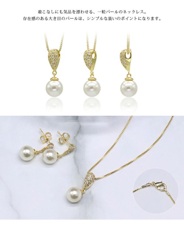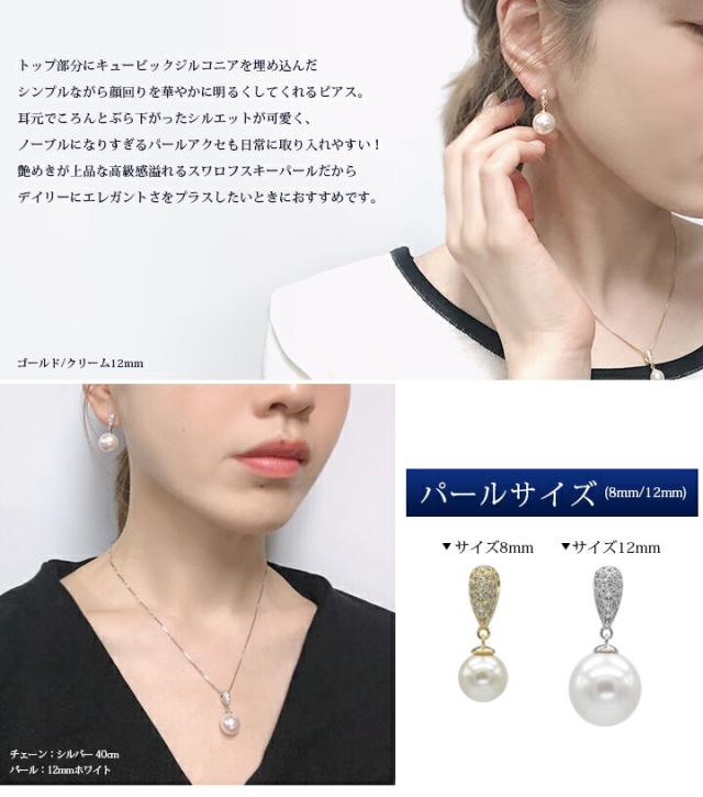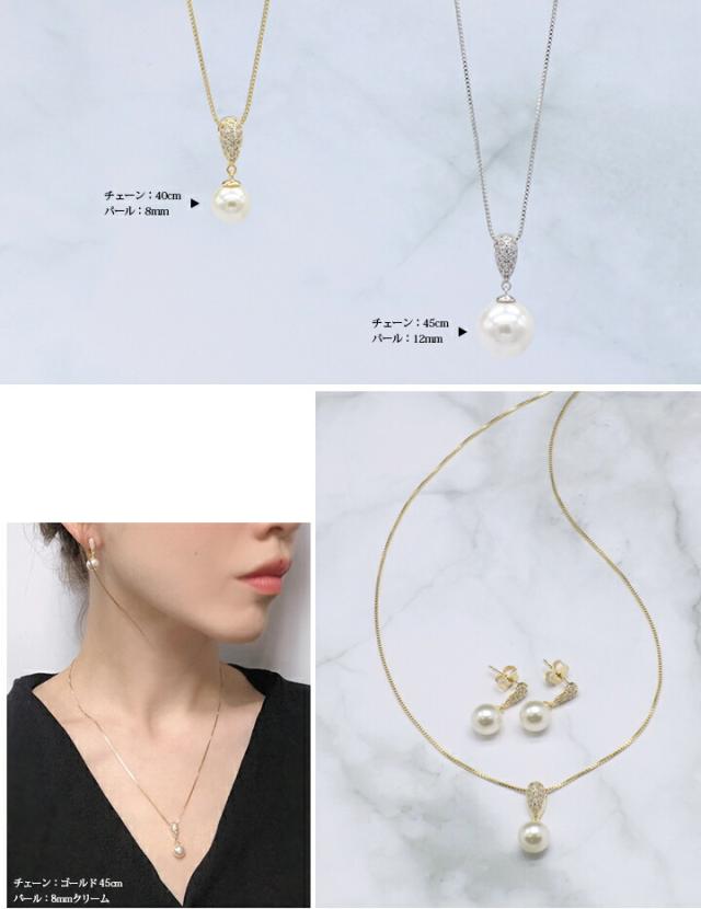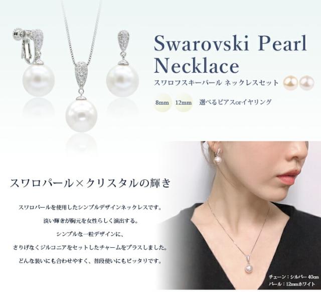 スワロフスキークリスタル使用 パール ネックレス 2点 セット ピアス イヤリング 真珠 8mm 12mm クリーム ホワイト ベネチアンチェーン 40cm 45cm 一粒パールネックレス レディース ネックレス アクセサリー フォーマル プレゼント 成人式 卒業式 入学式