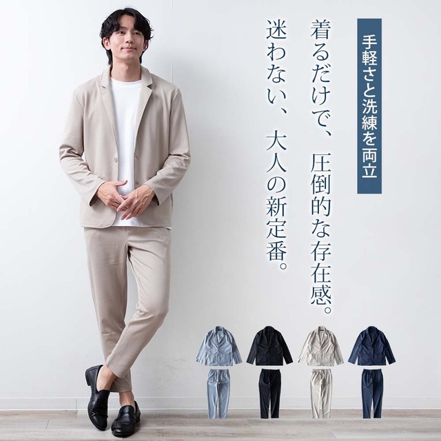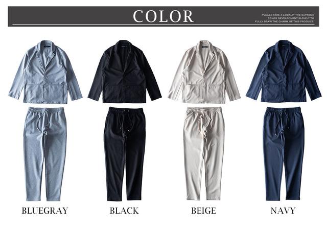 セットアップ メンズ テーラードジャケット イージーパンツ テーラード ジャケット 秋冬 アンクルパンツ イージーケア ゴムウエスト ストレッチ ロングパンツ ブレザー 上下セット おしゃれ 全4色 シンプル 無地 メンズパンツ 黒 グレー ベージュ