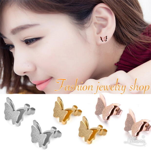 金属アレルギー対応シンプルピアス 人気の蝶々モチーフ女性なら誰でも憧れる♪
