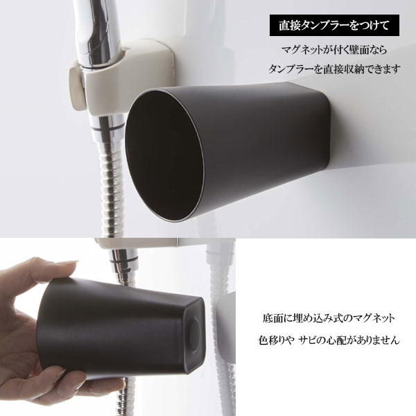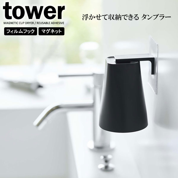 山崎実業 tower タワー フィルムフック マグネットタンブラー 200ml ブラック 5488 | コップホルダー コップ立て 浮かせる 収納 歯磨きコップ 吸着 フック フィルムフック 水が切れる 壁面 洗面 グッズ マグネット ぬめり防止