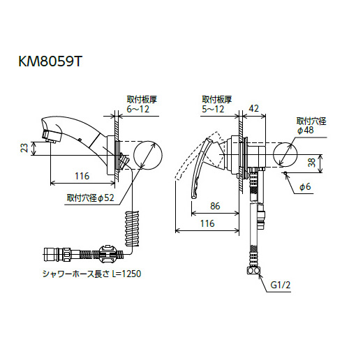 【直送】 KVK シングル洗髪シャワー 壁取付タイプ 寒冷地用 KM8059T