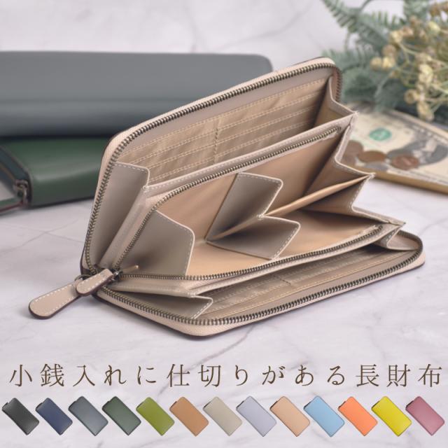 長財布 レディース メンズ ラウンドファスナー 財布 本革 仕切り付き小銭入れ シンプル 軽量 大容量 牛革 スリム 男女兼用 グリーン ネイビー レザー 春財布 薄型 仕分け YKK 多収納 おしゃれ 通帳 薄い 軽い 革 主婦 女性 婦人 男性 人気 開運 母の日 ギフト 送料無料