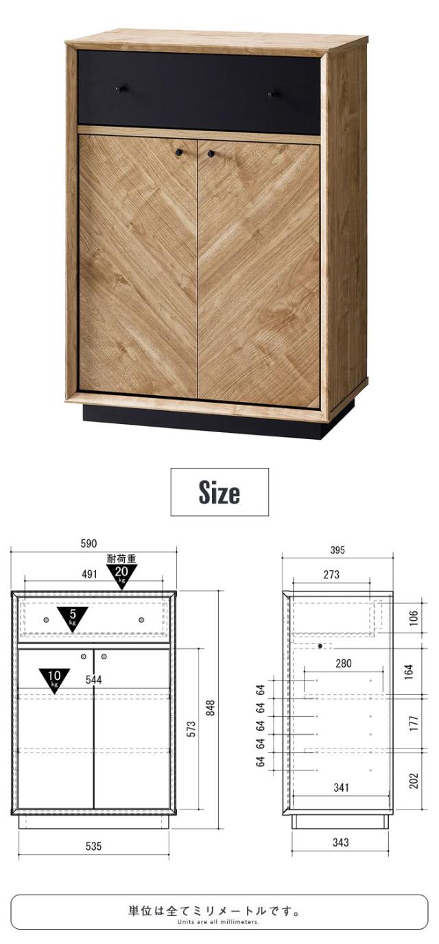 | [収納部]約幅547×奥行34.1×高さ57.4cm [引出部]約幅49.1×奥行27.3×高さ10.5cm |