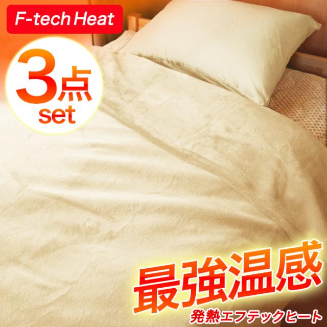 3点セット 保温 発熱 布団用セット シングル 毛布掛けカバー 敷きパッド 枕パッド 温感 ヒート 温かい あったか 冬用 吸湿発熱 F-tech エフテックヒート 掛け敷き布団セット シングル 3点セット 送料無料