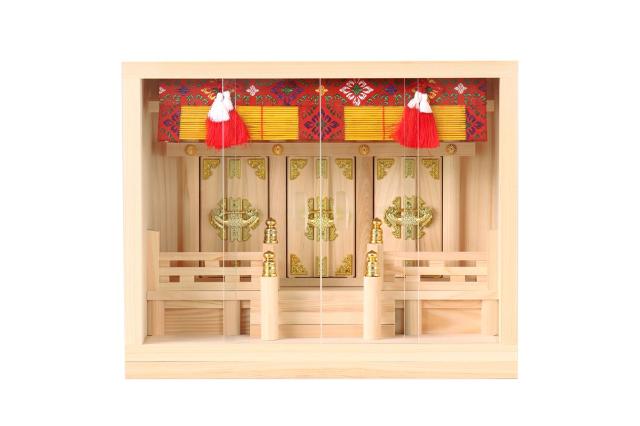 お御簾とガラス引戸で飾られた、とても上品な箱宮です。東濃ひのき製の良質な材を使用した、丁寧な仕上がり。
