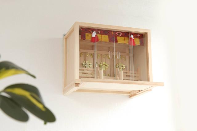 壁掛けの際は十分な強度を確保して設置ください。業者様の取り付けをお勧めします。お神札は付属いたしません。 |