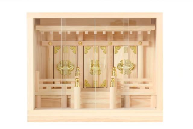 神棚 箱宮 三社 壁掛け 13号 特小サイズ 御簾付き 『天桔梗』 ひのき