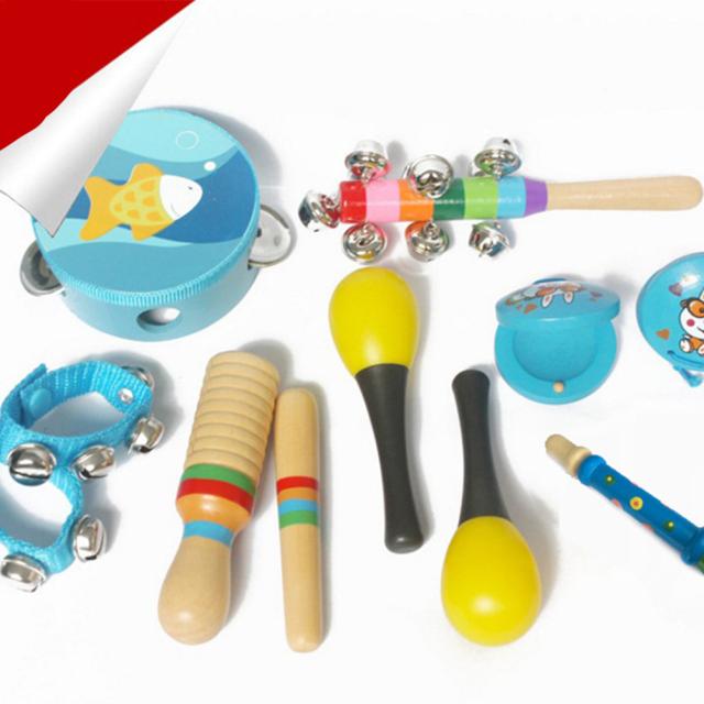 10個/セット子供打楽器の組み合わせ木製ドラムガラガラ子供のための早期学習音楽セット