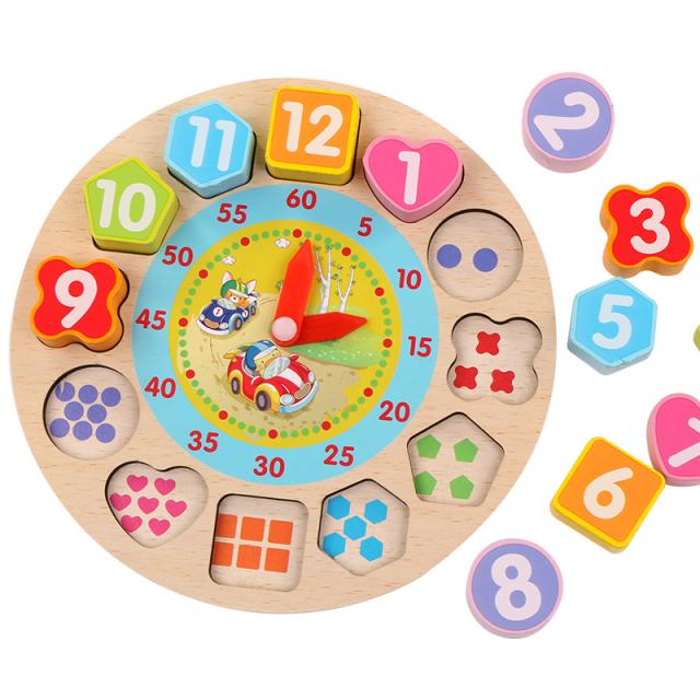 木製パズルクロックおもちゃ認知デジタル時計木製の時計ジグソーパズルおもちゃ