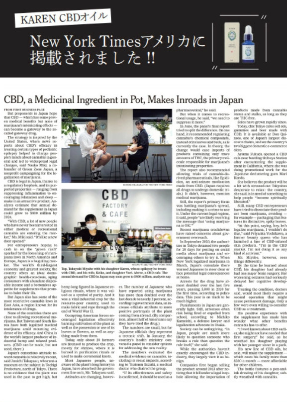 愛娘のカレンちゃんは生後3ヶ月から重い症状がではじめました。病院でお世話になりながらも思うように回復しませんでした。そのため、カレンパパは必死に情報を集め、CBDにたどり着き、CBD チャリティバンク [みどりのわ」のCBDの金銭的支援と、医師の紹介を受けることにたどり着き、良い結果がでました。このことはアメリカの有名新聞にも掲載されました。