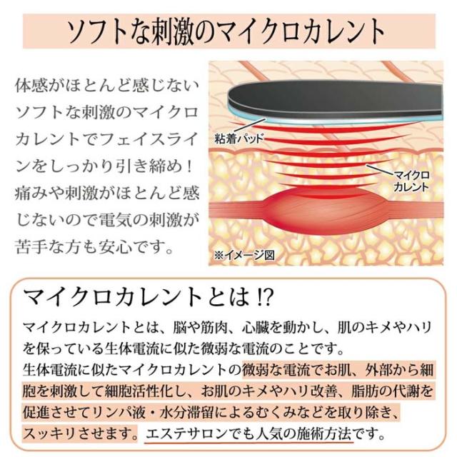 マイクロカレントは極わずかな電流の為、刺激がなく、痛みが苦手な方でも安心してご使用できます。
