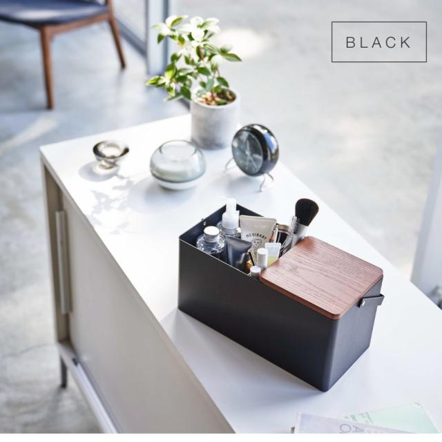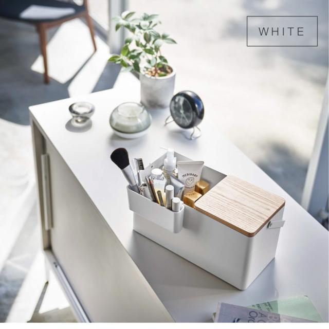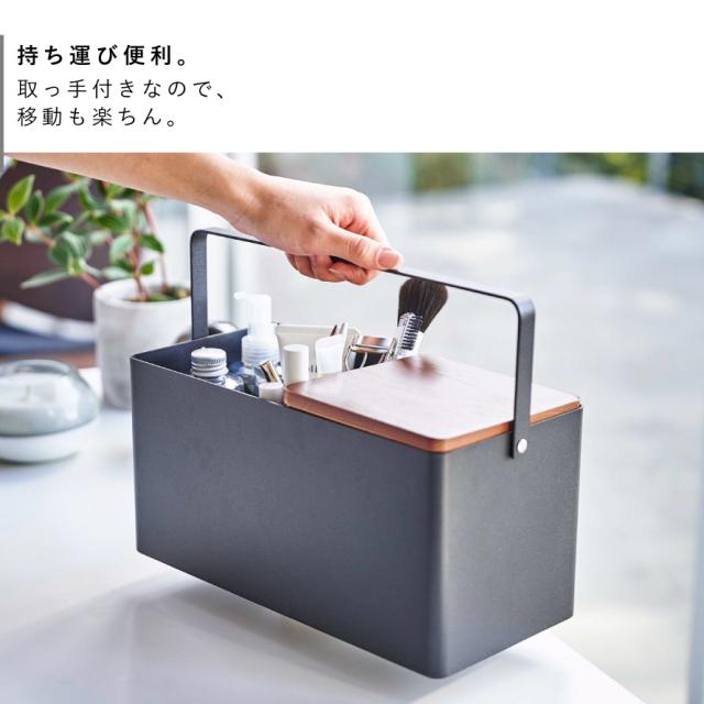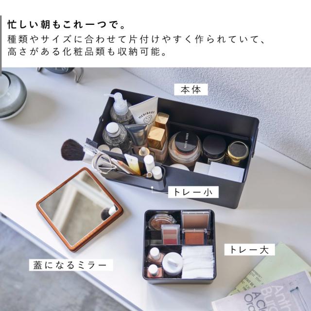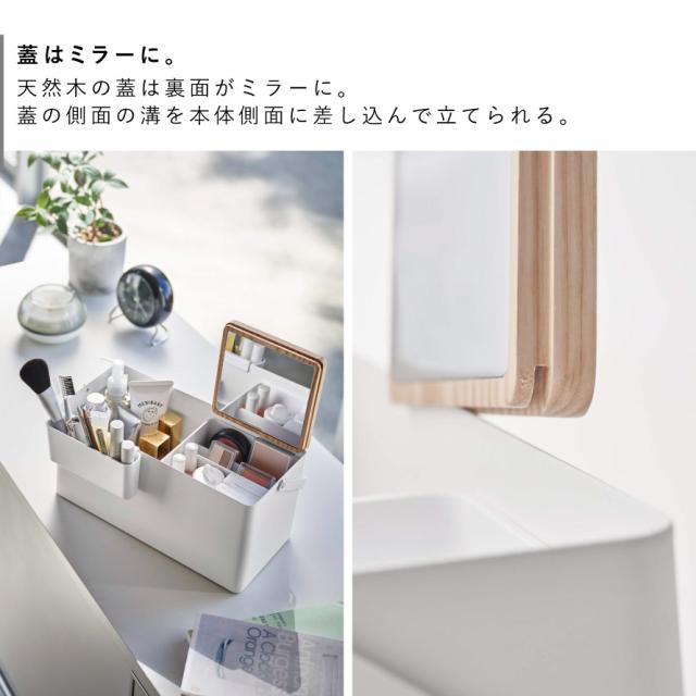 メイクボックス タワー 山崎実業 tower コスメボックス 木製 鏡付き コスメ メイク道具 収納 持ち運び おしゃれ モノトーン ホワイト ブラック 5453 5454