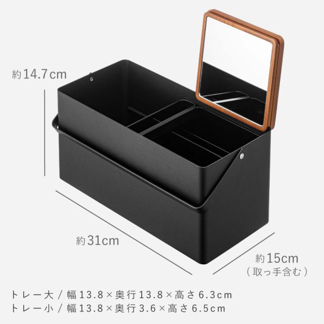 ■材質:容器/スチール(粉体塗装)、蓋/天然木(ラッカー塗装)、ミラー/2mm厚ガラス、トレー(大)(小)/ABS樹脂