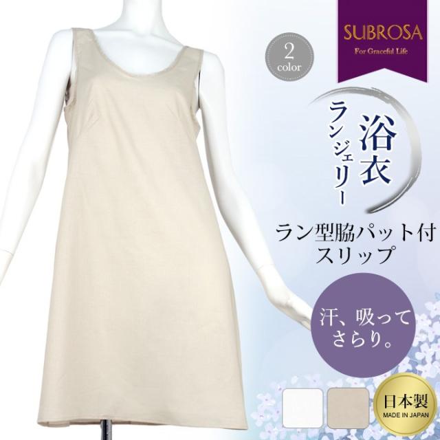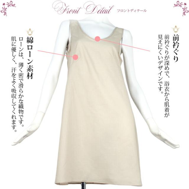 浴衣 着物の下に着る肌着 ラン型 脇パット付き スリップ 7403 下着 浴衣 着物 スリップ ペチコート ワンピース ランジェリー 日本製 レディース インナー 肌着 アンダーウェア ウエア 綿100% 下着透け対策 透けない 透け防止 響かない 渡辺商店 大きいサ 7403