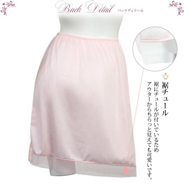 日本製 チュール レース 50cm丈 ペチコート スカート 4593 レディース セクシー ランジェリー インナー ぺチスカート サテン ボトムス インナー チュール リボン 浴衣 ゆかた 透けない 透け防止対策 アンダーウェア ウエア ペチ 大きいサイズ リボン 静電気防 4593